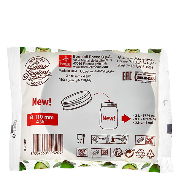 - Desinfektion: Alle Quattro Stagioni-krukker og -låg kan steriliseres ved at sprøjte med op til 96 % alkohol.