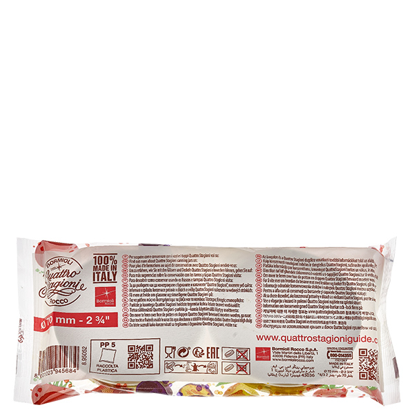 - Varme- og kuldebestandighed: Metallåget er varmebestandigt op til ca. 100° Celsius. Alle Quattro Stagioni-låg kan fryses ned til -40° Celsius.