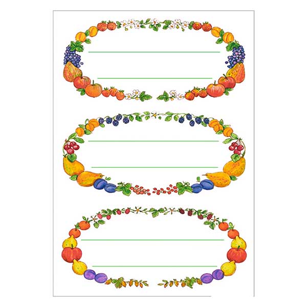 Køkkenetiketter "Frugtkranse" (12 klistermærker) | 4 ark = 12 papirklistermærker.