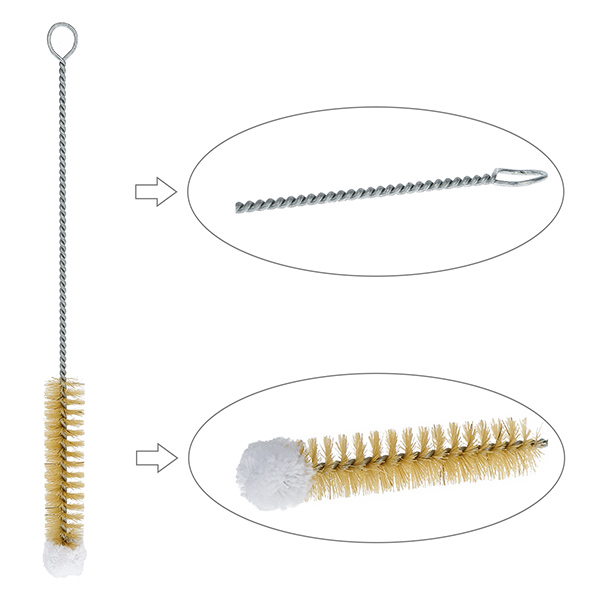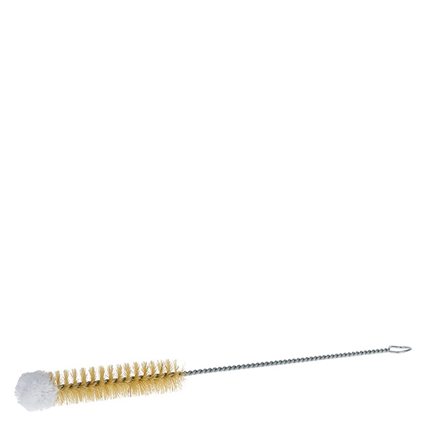 Rund rengøringsbørste med bomuldshoved ?16 mm. Ideel til rengøring af reagensglas. Naturlige børster og bomuld. 22 cm samlet længde.