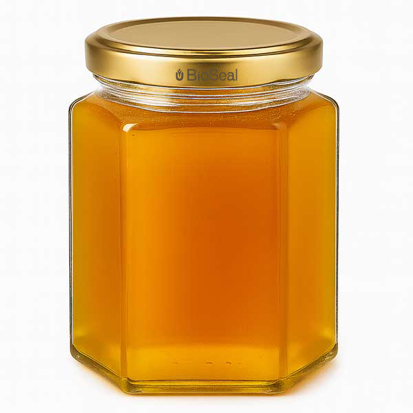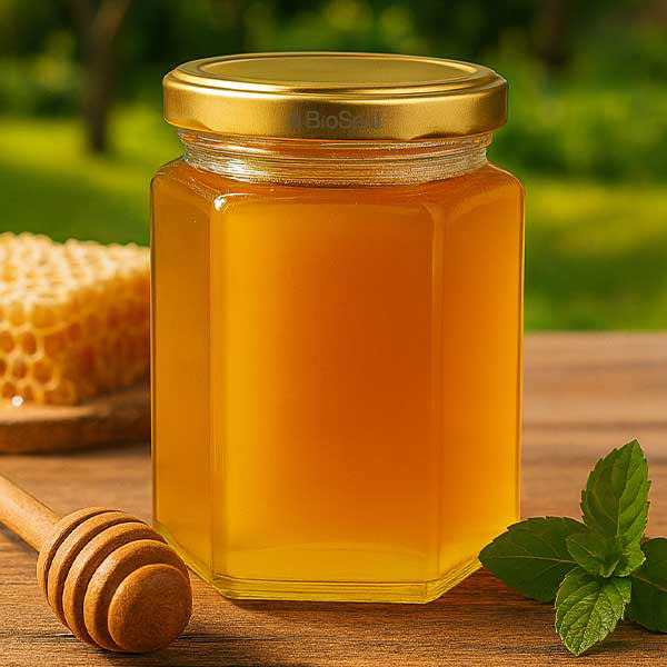 - BioSeal-mærkning: Lille, ca. 3 mm højt BioSeal-print på yderlågets sidekant.