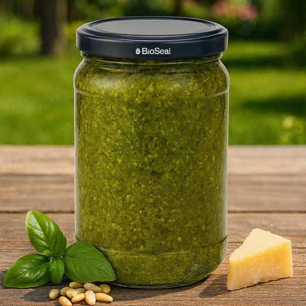 - BioSeal-mærkning: Lille, ca. 3 mm højt BioSeal-print på yderlågets sidekant.
