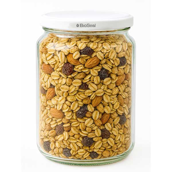 - BioSeal-mærkning: Lille, ca. 3 mm højt BioSeal-print på yderlågets sidekant.
